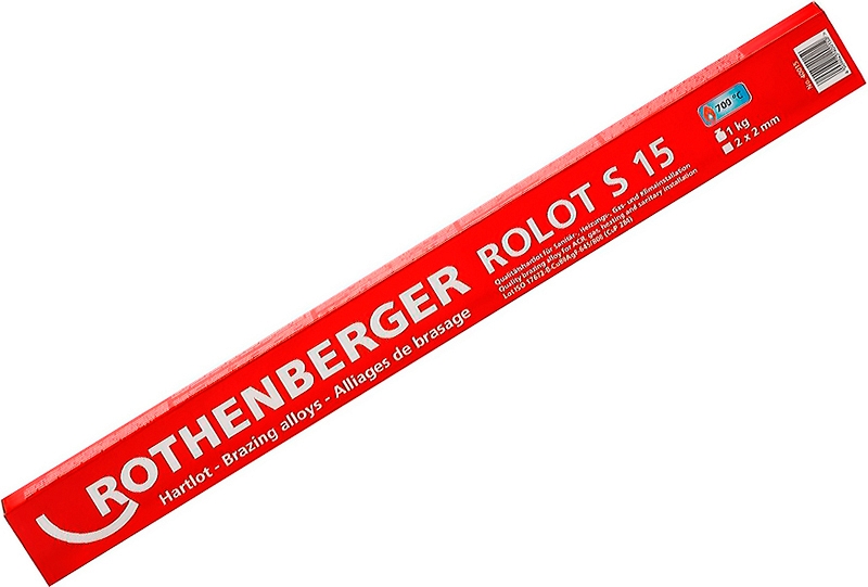 | 40015 | Rothenberger Rolot S 15 СР 102 | Медь, латунь | Для пайки латуни, красной бронзы, бронзы | Ag – 15% / Cu – 80% / P – 5% | +650°C ... +800°C | +710°C | 2 × 2 мм | 500 мм | 1 кг | 1,025 кг |