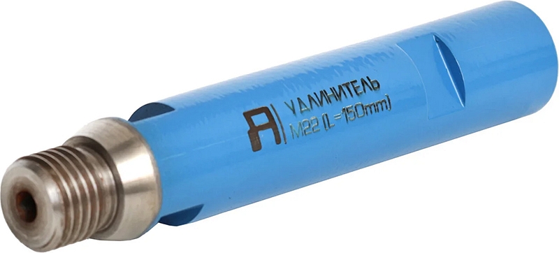Удлинитель стальной для алмазной коронки Алатон М22, 150 мм (Alaton M22, 150 mm) используется при необходимости создания отверстия большей глубины, чем позволяет длина алмазной коронки.