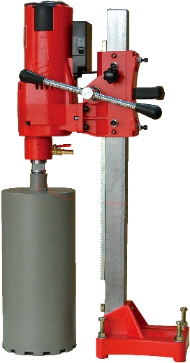 Установка алмазного бурения Saturn OB-205 (Сатурн ОБ-205) предназначена для сверления круглых отверстий Ø 15 – 205 мм в бетонных, железобетонных, базальтовых, асфальтовых и других поверхностях под трубы вентиляции, теплоснабжения, водоснабжения и подобных коммуникаций.