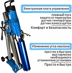 - Надежный трехскоростной редуктор позволяет оптимально подобрать скорость сверления для различных размеров коронок