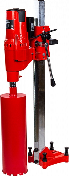 - Мощный надежный двигатель 3,9 кВт в прочном алюминиевом корпусе со стандартным резьбовым креплением сверлильных коронок