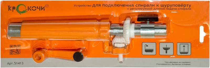 Цена и технические характеристики устройства для подключения прочистной спирали к дрели-шуруповерту Крокочист: