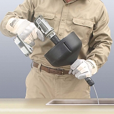 - Запатентованный зажимной патрон Quick-Grip плотно фиксирует прочистную спираль всего за четверть оборота