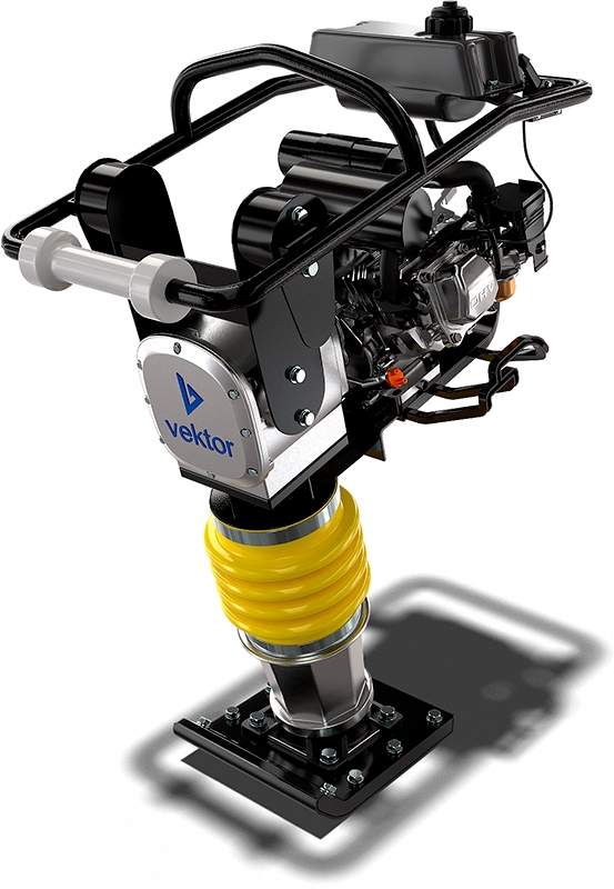 Вибротрамбовка бензиновая Vektor VRG-80L (Вектор ВРГ-80Л) – трамбовка (вибронога) для уплотнения связных глинистых почв, таких, как: глина и суглинок; песка и гравия; при небольших ремонтных работах и в узких ограниченных областях, таких, как: траншеи или фундаменты; работ при жестких неблагоприятных условиях строительного участка.