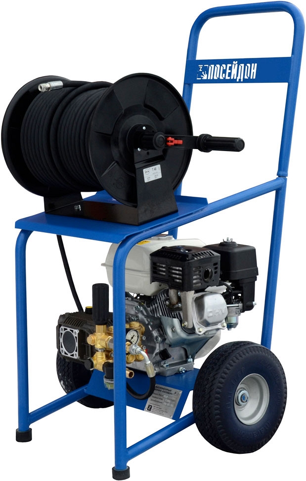 Водоструйный аппарат Посейдон ВНА-Б-150-15 (Poseidon VNA-B-150-15) – профессиональный, компактный, удобный в использовании, высоконапорный аппарат высокого давления с оптимальными рабочими характеристиками для высококачественной профессиональной промывки и прочистки канализации и других труб Ø 32 – 150 мм, длиной до 60 м, а также мойки любых поверхностей (транспорта и самоходных машин, зданий, полов и открытых площадок, цистерн и емкостей, птичников, ферм, свинокомплексов, на строительных площадках). Идеально подходит для подрядных организаций, ЖКХ, водоканалов и промышленных предприятий.